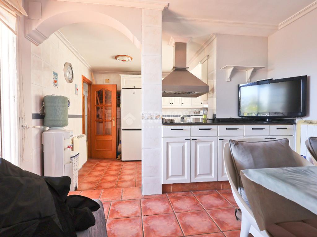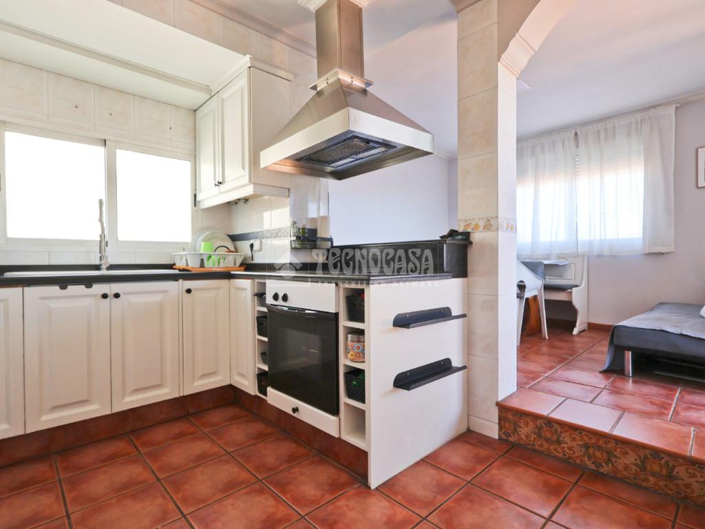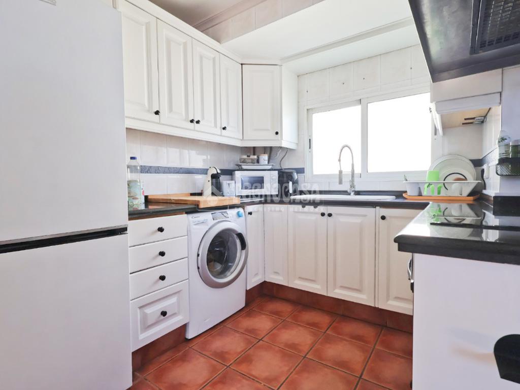 Cocina totalmente equipada, de gran amplitud y con acceso a la terraza donde dispondremos de una barbacoa de contrucción y vistas al mar.