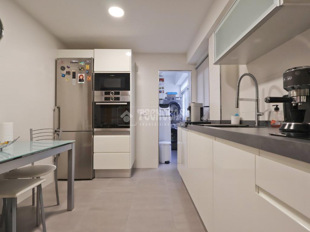 Cocina totalmente equipada y reformada, con galería. Salón/Comedor con salida a una amplia terraza, la cual cuenta con vistas privilegiadas al castillo de Sagunto.