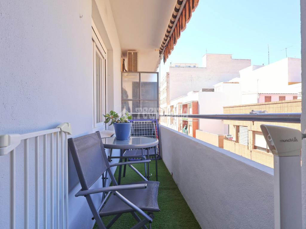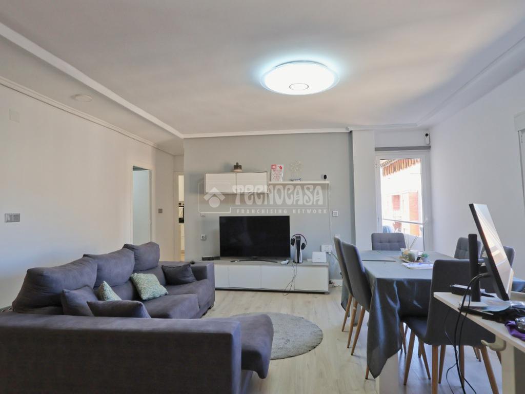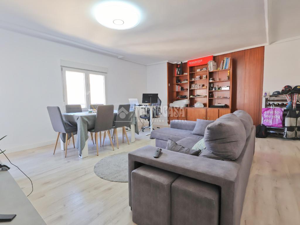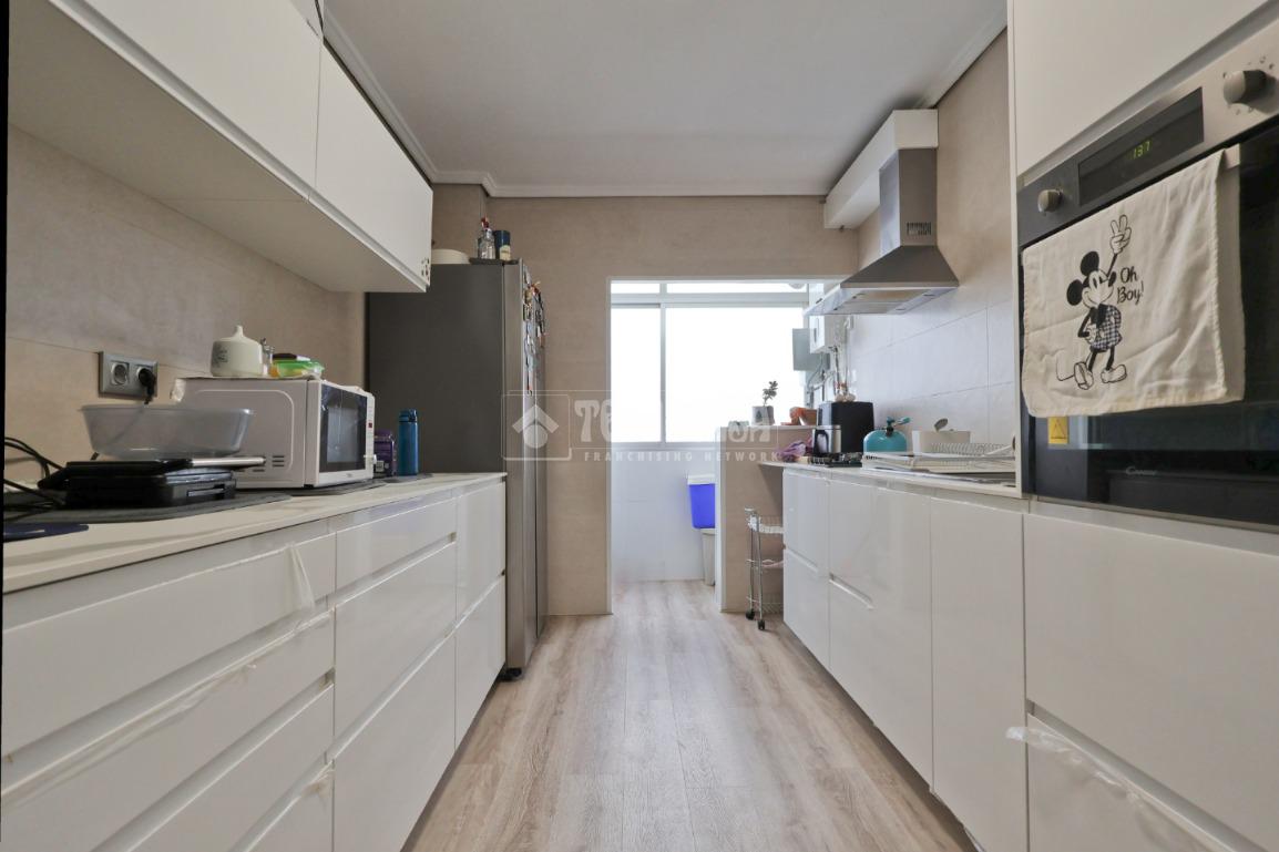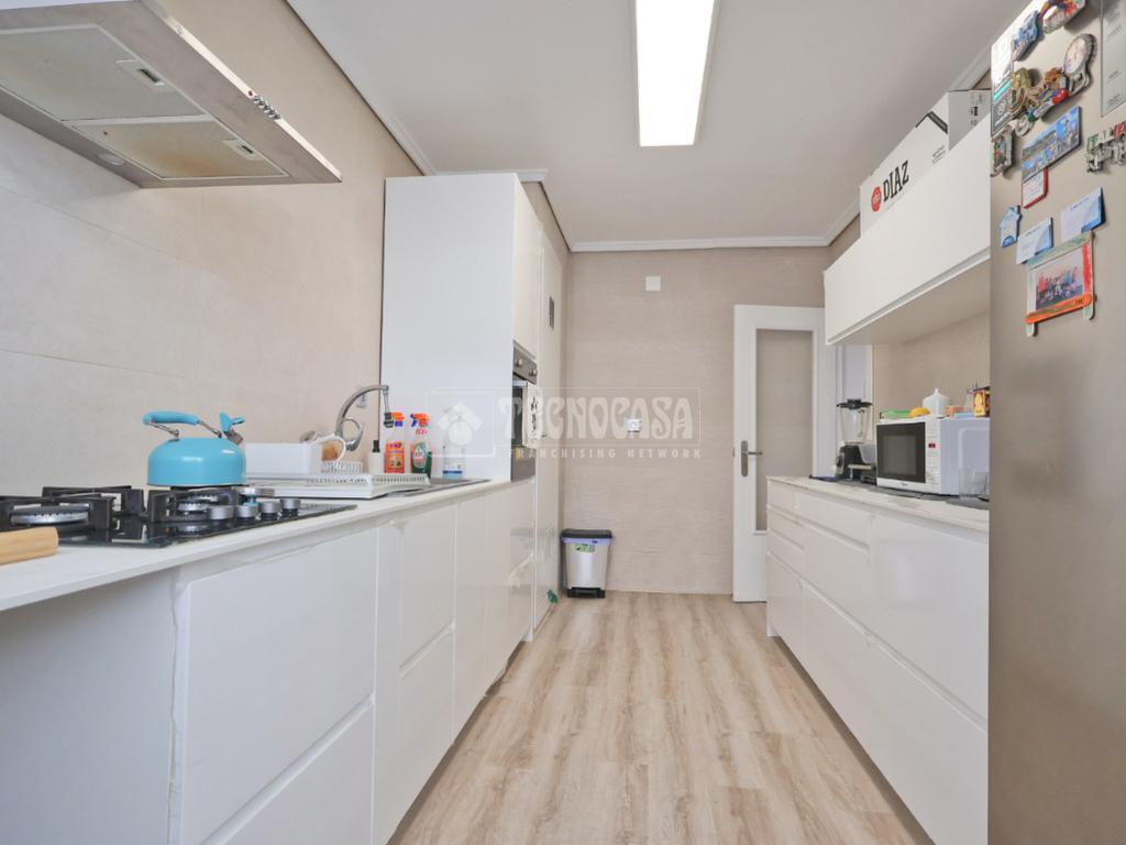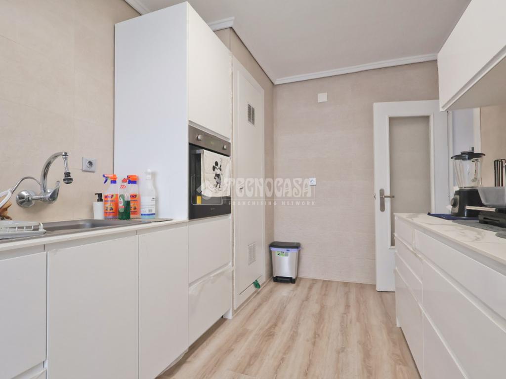 Un amplio y luminoso salón/comedor con salida al balcón. La cocina, completamente equipada, cuenta con amplia despensa.